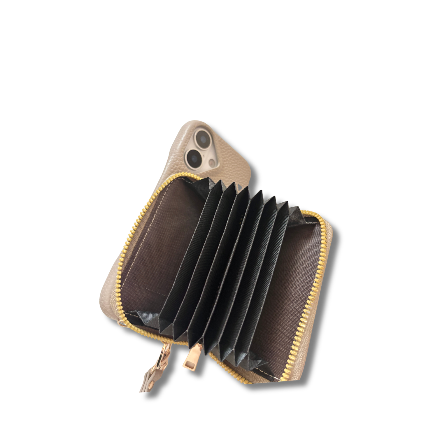 カードやお札をたっぷり収納できるアコーディオン設計。お財布いらずで軽やかなお出かけを。